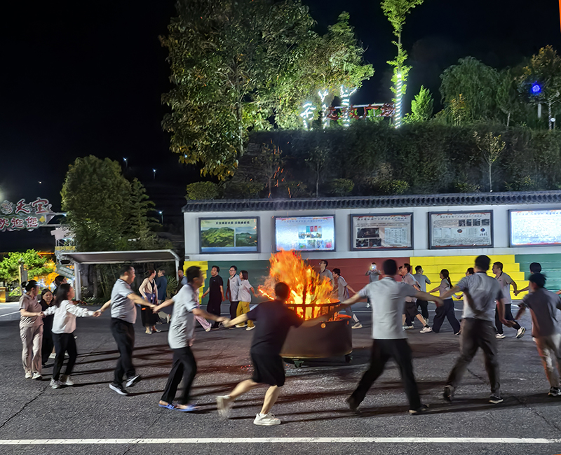 篝火與歌聲交織的團(tuán)建狂歡夜, 夜晚的篝火旁,是心與心的靠近。景區(qū)的籃球場(chǎng)搖身一變,成為了今晚活動(dòng)的主場(chǎng)地。工作人員早早地在場(chǎng)地中央架起了篝火堆,待天色完全暗下,在國(guó)盛激光領(lǐng)導(dǎo)人段總主持下,熊熊烈火瞬間點(diǎn)燃,跳躍的火苗猶如熱情的舞者,照亮了整個(gè)場(chǎng)地,也點(diǎn)燃了每個(gè)人心中的歡樂。褪去工作中的嚴(yán)肅,大家圍繞篝火共舞,暖橙色的火光映照著一張張興奮的臉龐。