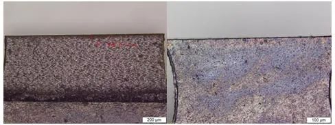 用電子顯微鏡和光學(xué)顯微鏡觀察,薄氧化物的光學(xué)效應(yīng)和之前熔融銅的散射/反射性質(zhì)不太明顯,這使得人們可以關(guān)注表面的真實(shí)尺寸方面,例如調(diào)制、邊緣平直度等。在這里,SEM圖像顯示了一個(gè)干凈且經(jīng)過精密加工的特征,具有高質(zhì)量的表面。