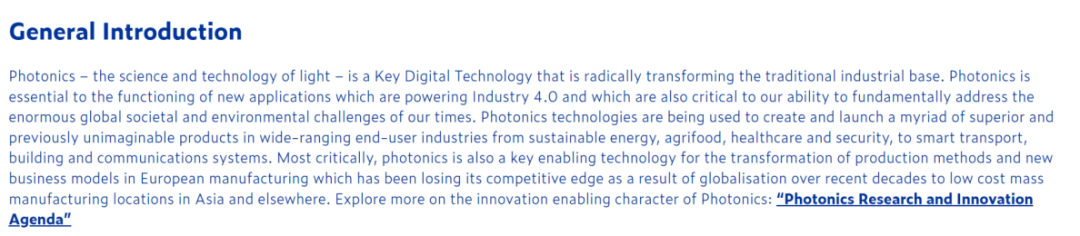 此外,美國早在2014年便已成立“國家光子計劃”產(chǎn)業(yè)聯(lián)盟,明確表明將會支持發(fā)展光學(xué)與光子基礎(chǔ)研究與早期應(yīng)用研究計劃開發(fā),研究包括生物光子學(xué)、從微弱光到單個光子、復(fù)雜媒介成像、超低功耗納米光電子四大領(lǐng)域,應(yīng)用則包括降低研發(fā)所需制造技術(shù)成本、促進(jìn)特殊光子有關(guān)技術(shù)開發(fā)、關(guān)鍵光子學(xué)材料國內(nèi)資源這三個領(lǐng)域。