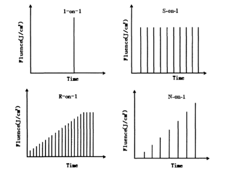 損傷閾值測(cè)試方法有R-on-1,S-on-1,1-on-1和N-on-1,可根據(jù)產(chǎn)品的實(shí)際特性和客戶需求進(jìn)行測(cè)試,從而監(jiān)控基底材料、拋光元件以及膜層表面的損傷閾值。通過損傷測(cè)試不僅可為產(chǎn)品激光損傷閾值的改善和提高提供依據(jù),同時(shí)通過對(duì)每批次產(chǎn)品激光損傷閾值的一致性進(jìn)行監(jiān)控,從而確保激光元器件在高功率條件下的優(yōu)良性能。