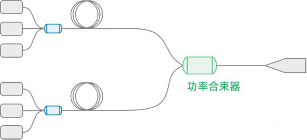 (1)泵浦合束器主要是將多路泵浦光合束到一根光纖中輸出,主要用來提高泵浦功