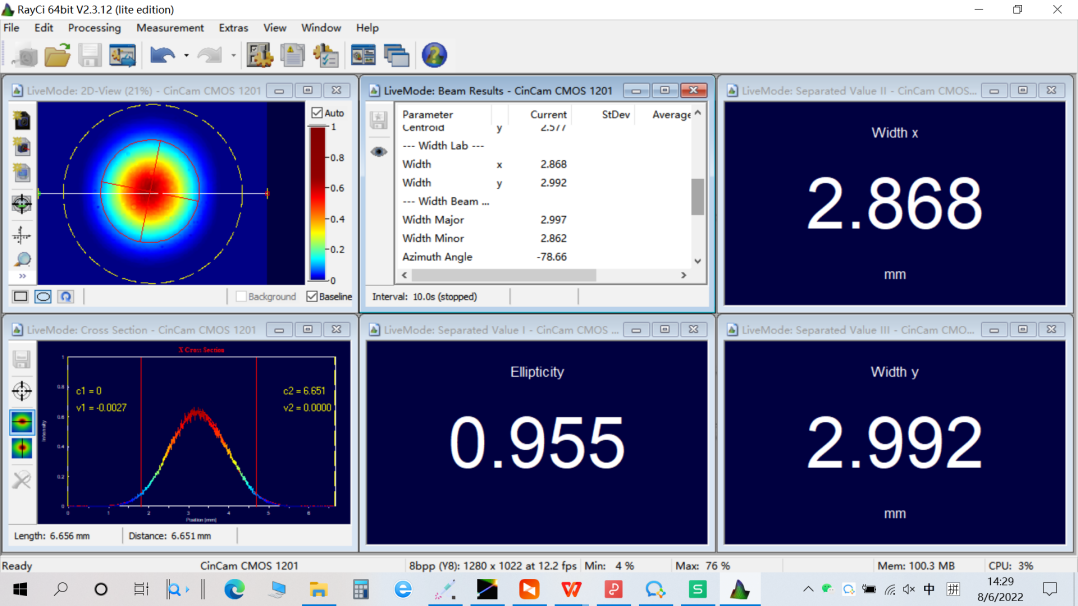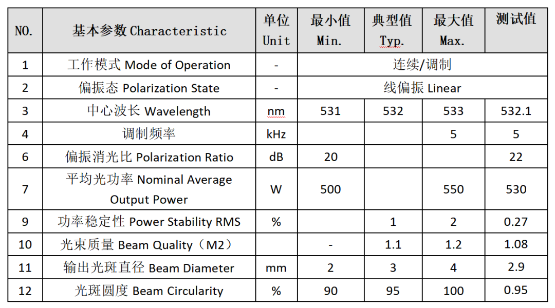 測(cè)量的主要激光特性見下:
