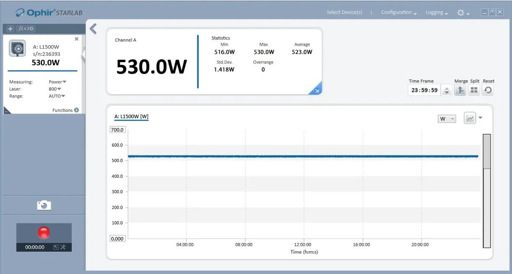 圖7. 500W 連續(xù)綠光輸出功率測(cè)試