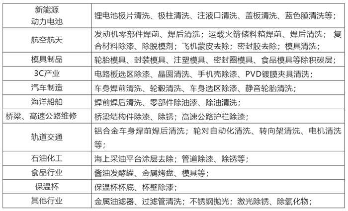 另外,MOPA激光器具有較高的激光能量余量,可以通過改善激光清洗裝置,如加大激光加工光斑,配合智能化系統(tǒng)等,實現(xiàn)激光清洗裝備升級。值得一提的是,由于MOPA激光器具有優(yōu)良的性能和靈活的場景適用性,在新能源電池等新興產(chǎn)業(yè)應用尤為廣泛。