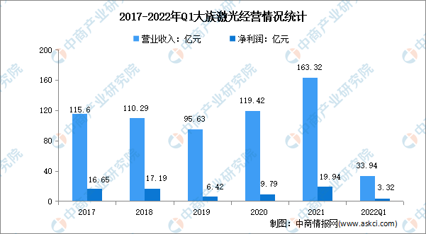 大族激光是一家專業(yè)從事工業(yè)激光加工設(shè)備與自動(dòng)化等配套設(shè)備及其關(guān)鍵器件的研發(fā)、生產(chǎn)和銷售的高新技術(shù)企業(yè),具備從基礎(chǔ)器件、整機(jī)設(shè)備到工藝解決方案的垂直一體化優(yōu)勢(shì),是全球領(lǐng)先的工業(yè)激光加工及自動(dòng)化整體解決方案服務(wù)商。業(yè)務(wù)范圍從工業(yè)激光加工設(shè)備與自動(dòng)化等配套設(shè)備拓展到上游的關(guān)鍵器件。2021年,大族激光營(yíng)業(yè)收入達(dá)163.32億元,實(shí)現(xiàn)歸母凈利潤(rùn)19.94億元,同比增長(zhǎng)103.74%。2022年第一季度實(shí)現(xiàn)營(yíng)業(yè)收入33.94億元,凈利潤(rùn)達(dá)3.32億元。