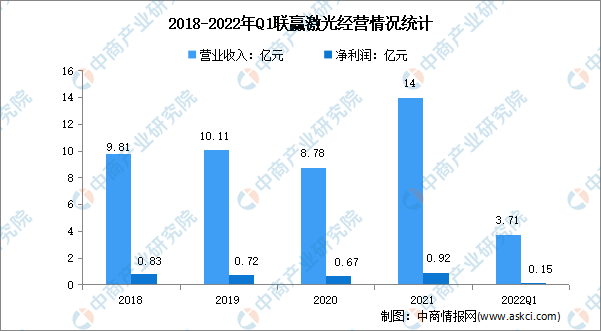 聯(lián)贏激光是國(guó)內(nèi)領(lǐng)先的精密激光焊接設(shè)備及自動(dòng)化解決方案供應(yīng)商,專業(yè)從事精密激光焊接機(jī)及激光焊接自動(dòng)化成套設(shè)備的研發(fā)、生產(chǎn)、銷售。聯(lián)贏激光產(chǎn)品廣泛應(yīng)用于動(dòng)力電池、汽車制造、五金家電、消費(fèi)電子、光通訊等制造業(yè)領(lǐng)域。2021年聯(lián)贏激光實(shí)現(xiàn)營(yíng)業(yè)收入14億元,實(shí)現(xiàn)凈利潤(rùn)0.92億。2022年第一季度實(shí)現(xiàn)營(yíng)業(yè)收入3.71億元,凈利潤(rùn)達(dá)0.15億,同比增加16.86%。