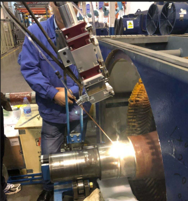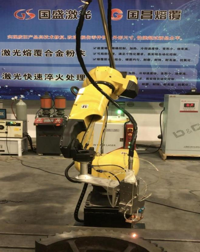 多功能熔覆/淬火設(shè)備主體采用六軸機(jī)器人設(shè)計,配置變位機(jī)、旋轉(zhuǎn)主軸箱、尾座、托架及人機(jī)界面控制系統(tǒng),各部件可以實現(xiàn)聯(lián)動;配置具有加熱功能的雙伺服電機(jī)控制的雙筒高精度送粉器,可實現(xiàn)精準(zhǔn)送粉的同時對粉末預(yù)熱烘干;全水冷熔覆/淬火頭可實現(xiàn)24小時連續(xù)作業(yè);該設(shè)備最大回轉(zhuǎn)直徑?1400mm,裝夾工件最大長度10000mm,最大承載能力10T;可實現(xiàn)軸類、盤類零件的外圓及復(fù)雜曲面熔覆/淬火,也可對內(nèi)孔進(jìn)行熔覆/淬火。該類設(shè)備可根據(jù)客戶需求提供個性化設(shè)計。