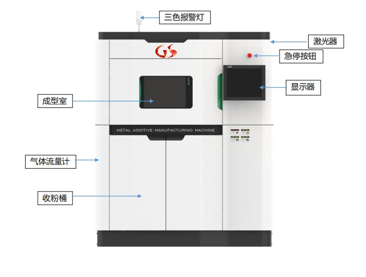 國盛激光SLM300激光3D打印設(shè)備由光學(xué)系統(tǒng)、循環(huán)過濾系統(tǒng)、氣氛保護系統(tǒng)、控制系統(tǒng)和機械系統(tǒng)組成,各個系統(tǒng)之間協(xié)同工作,智能高效的完成整套增材制造過程。該設(shè)備采用氬氣保護氣氛,有效的保證成型過程零件不被氧化,從而達到優(yōu)異的產(chǎn)品質(zhì)量。設(shè)備結(jié)構(gòu)如下圖所示: